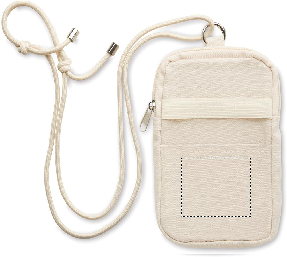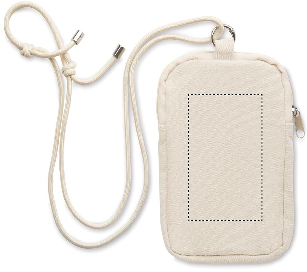 Crossbody-Smartphone-Tasche aus recycelter Baumwolle mit verstellbarer Kordel aus RPET-Polyester. Steckfach auf der Vorderseite. 280 g/m².
