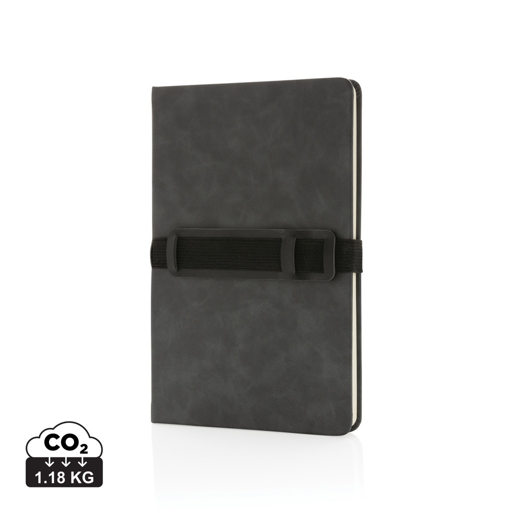 Deluxe Hardcover PU Notizbuch mit Handy- und Stiftehalter, grau