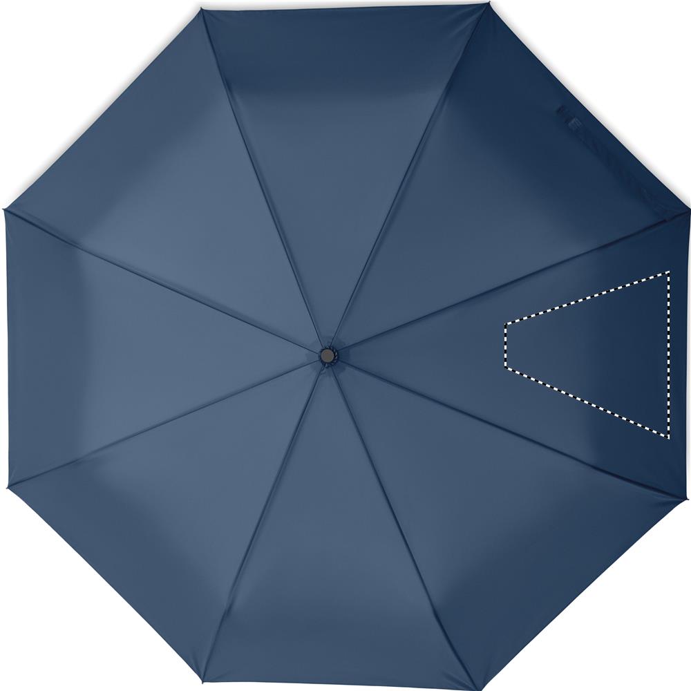 27' ' Regenschirm aus 190T Pongee-Material. Windbeständig. Gestell aus schwarz überzogenem Stahl, Schienen aus Fiberglas. 1-teilige schwarze Innenverkleidung. Schwarzer PP Griff mit Knopfdruckmechanismus. 3fach faltbar. Passende Schirmhülle. Automatische Öffnung und Schließung.