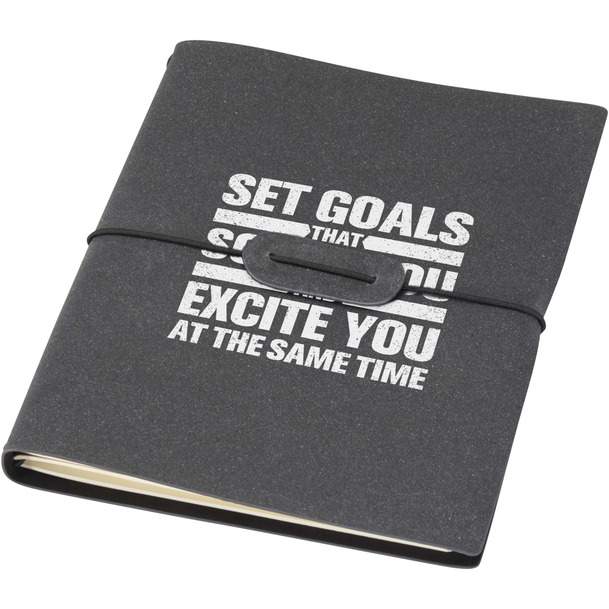 Das Slyk A5-Nachfüllheft verfügt über ein Cover aus recyceltem Kunststoff und wird durch ein elastisches Band sicher verschlossen. Im Inneren befinden sich zwei Hefteinsätze – eines punktkariert, eines liniert. Jedes Heft enthält 32 cremefarbene Seiten aus 70 g/m² Papier mit abgerundeten Ecken und sichtbarer Fadenheftung für einen handgearbeiteten Look. Die Umschläge der Hefte bestehen aus Karton. Nachfüllhefte sind separat in verschiedenen Layouts erhältlich, darunter punktkariert, Planer und liniert.