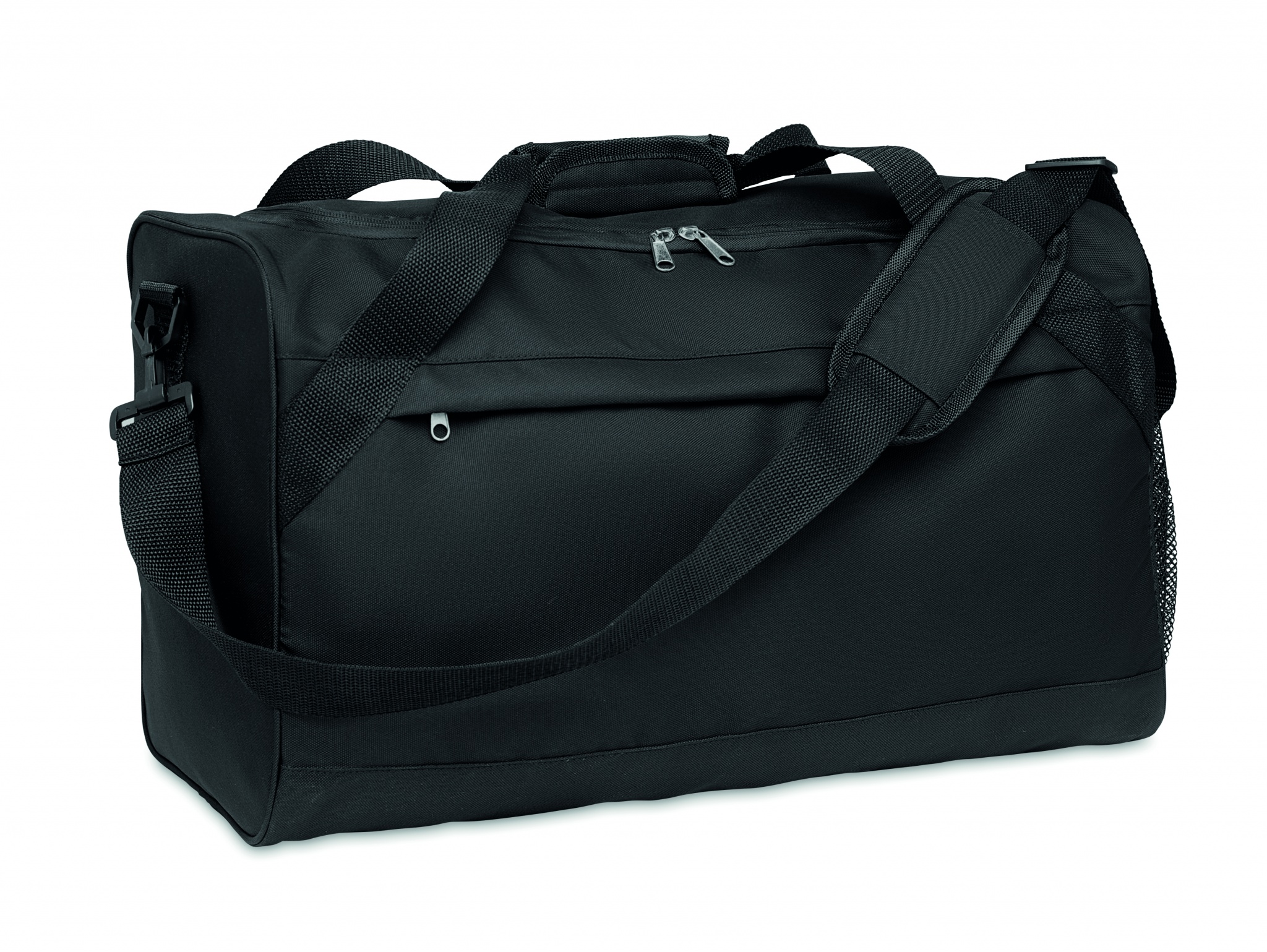 Sport- oder Reisetasche mit Reißverschluss-Fronttasche, Innentasche und verstellbarem, abnehmbarem Schultergurt. 600D RPET .