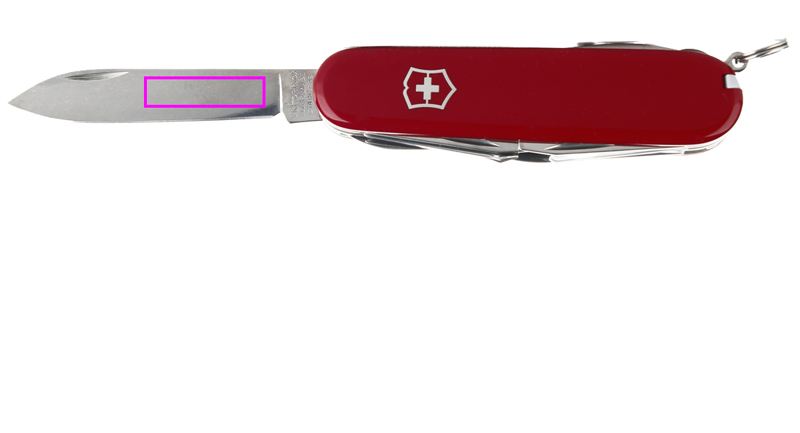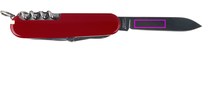 Funktionen: 1. Große Klinge 2. Kleine Klinge 3. Korkenzieher 4. Dosenöffner 5. Kleiner Schraubendreher (3 mm) 6. Kapselheber 7. Schraubendreher (6 mm) 8. Abisolierzange 9. Stech-Bohr-Nahsaug-Säge 10. Schlüsselring 11. Pinzette 12. Zahnstocher