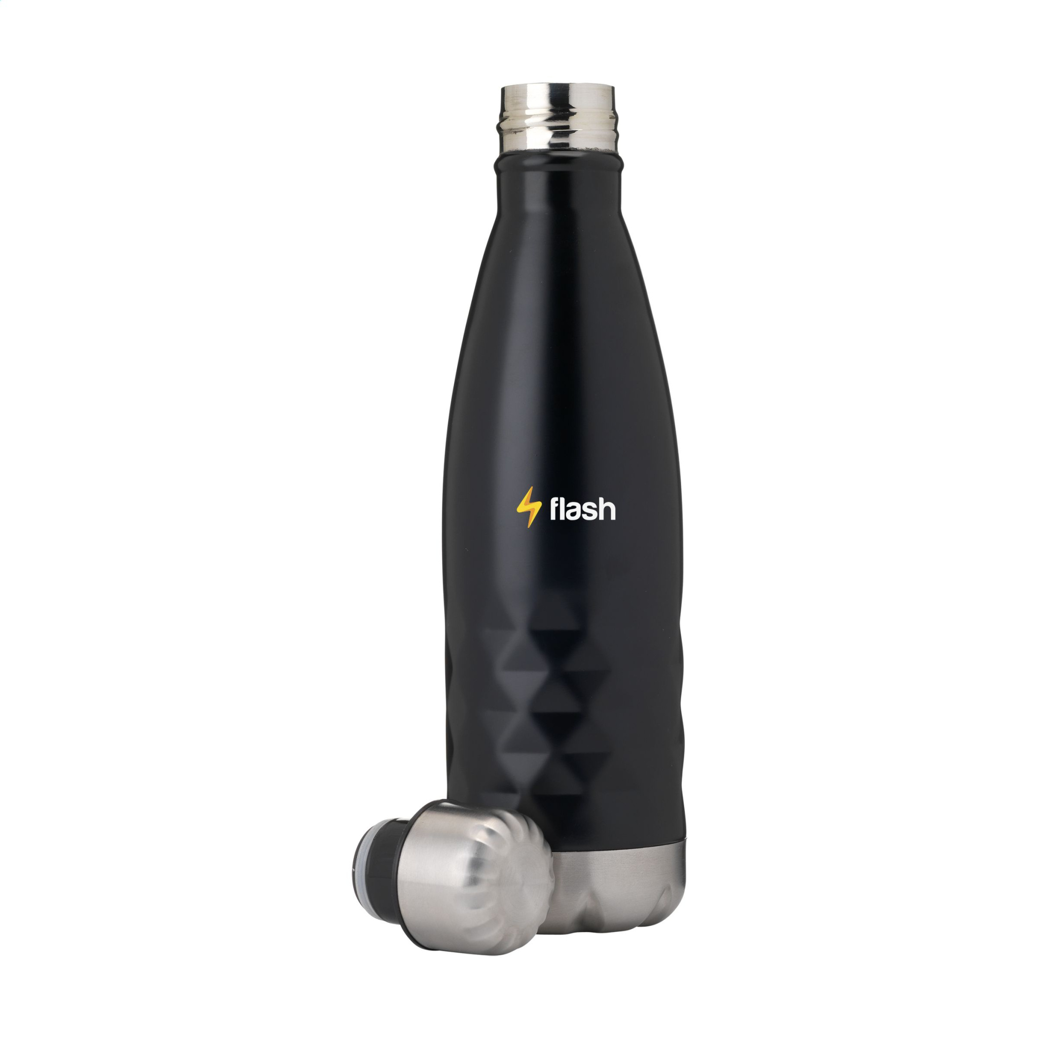 Doppelwandige, auslaufsichere Edelstahl-Wasserflasche/Thermoflasche mit markantem geometrischem 3D-Rautenmuster. Geeignet zum Warmhalten von kaltem oder heißem Wasser. Fassungsvermögen 500 ml. Jeder Artikel ist einzeln verpackt.