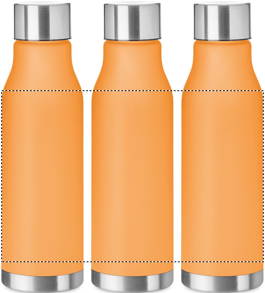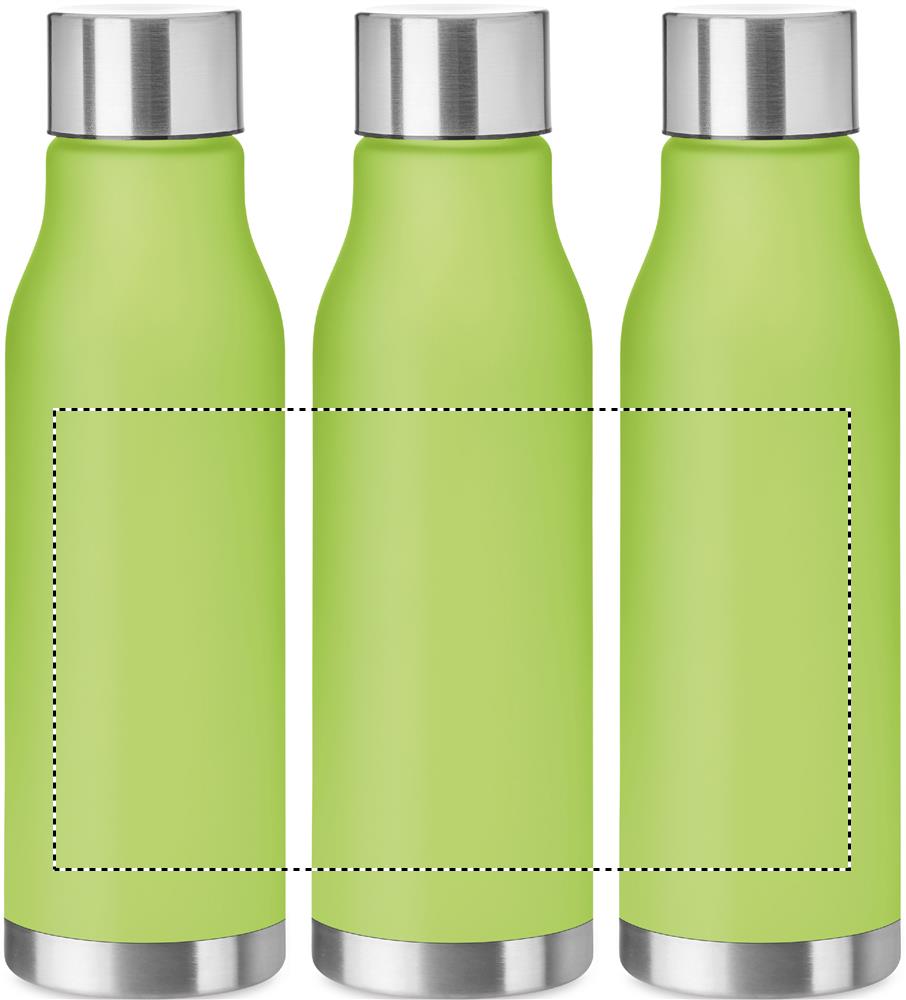Trinkflasche aus RPET mit gummierten Finish und Verschluss aus Edelstahl mit RPET im Inneren und Silikon Dichtungsring. BPA frei. Füllmenge: 600 ml. Nicht geeignet für kohlensäurehaltige Getränke. Auslaufsicher.