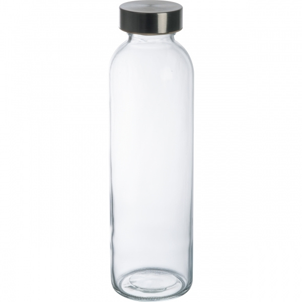 Trinkflasche aus Glas mit 600 ml Fassungsvermögen und Edelstahldeckel. Die Flasche ist für kohlensäurehaltige Getränke geeignet. Wir bringen Ihre Werbung auf der Flasche an. Auf Wunsch ist auch eine Deckelgravur möglich.