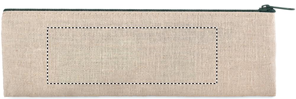 6 piece stationary set. Includes a jute and cotton case, wooden ruler, plastic sharpener, eraser, paper pencil and ball pen with blue ink.