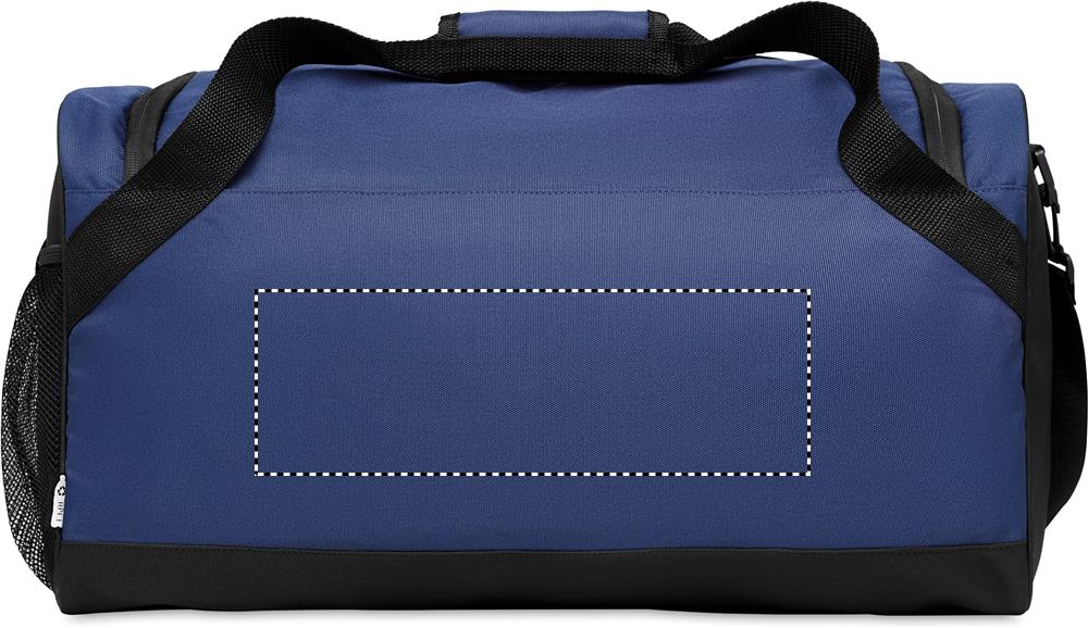 Sport or travelling bag in 600D RPET with large zippered front pocket, inside zippered pocket and adjustable and detachable shoulder strap.