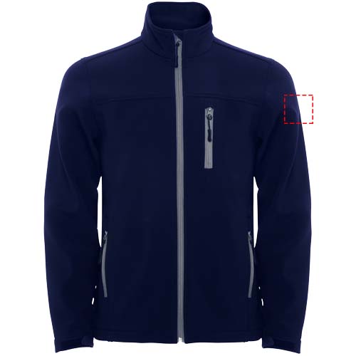 2-layer softshell. Inverted sealed effect zip with matching chin protector and zipper puller. Three zip pockets with matching puller. Velcro fasteners in cuffs. Adjustable bottom hem with elastic drawcord and stoppers. 1000 mm water resistant. Wind-proof fabric. The model is 129 cm and is wearing size 5/6.