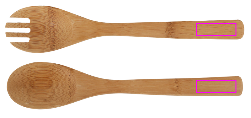 Nice salad cutlery made of bamboo. We engrave your logo on the handle of the spoon.