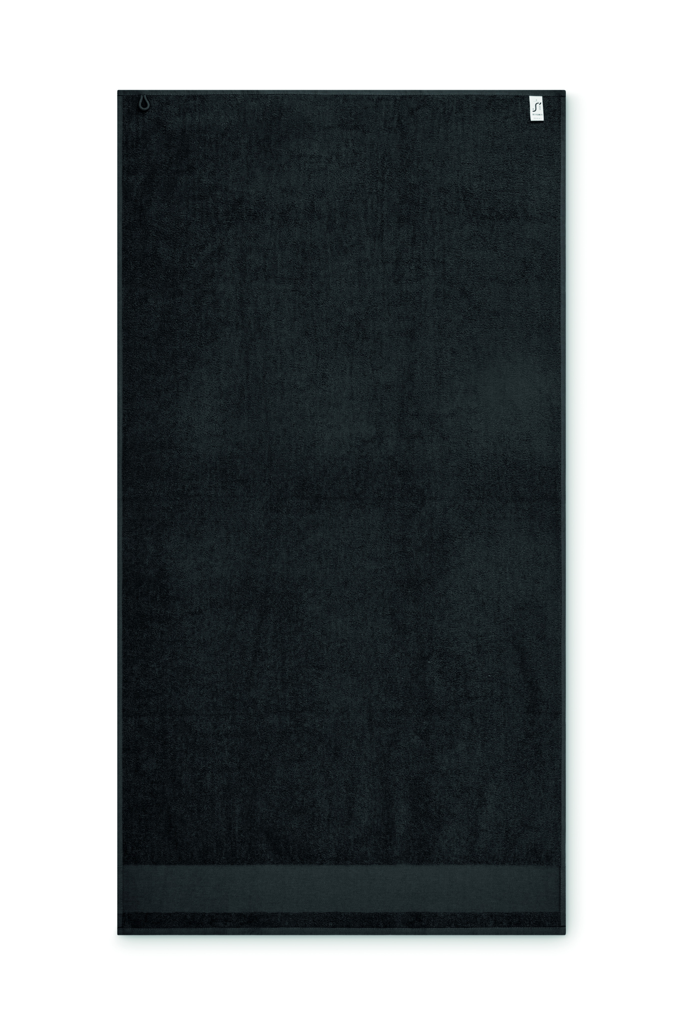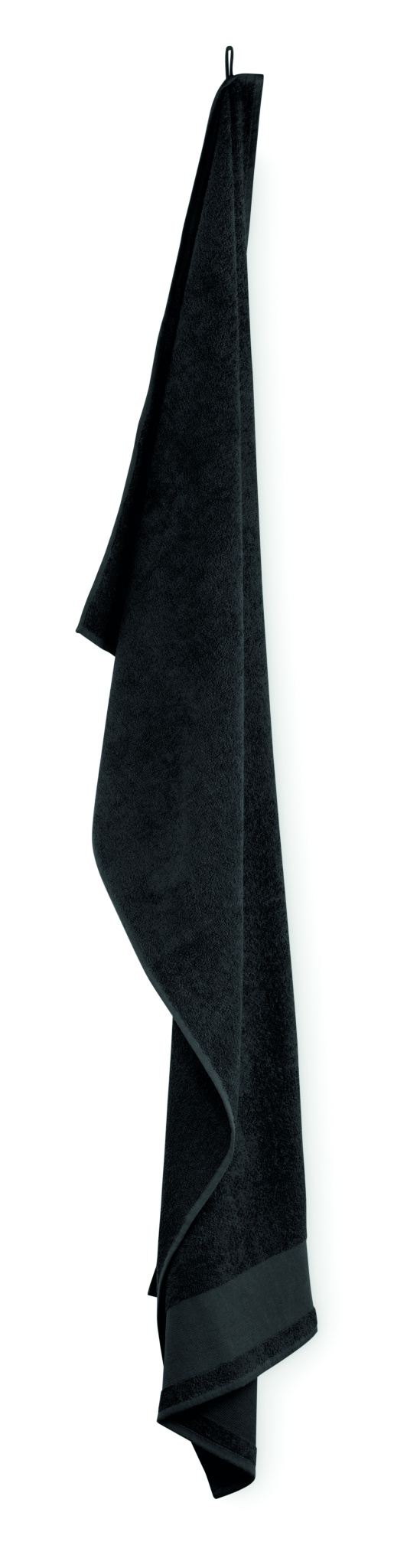 Bath towel made of 100% cotton, 380 gr/m² fabric with cotton hanger loop. Soft and absorbent design. Size 70 cm x 140 cm.