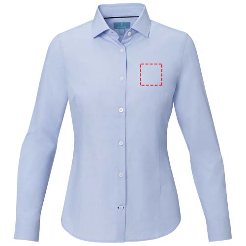 The Cuprite long sleeve women's organic shirt – a sustainable and stylish choice. Made from organic cotton poplin, this shirt combines ethical manufacturing with exceptional comfort. It features a semi-spread collar that offers a more relaxed and versatile look. The contrast-coloured stitching on the sleeve placket and bottom buttonhole placket adds a subtle pop of style. This shirt is designed with a fitted shape for a feminine look.
