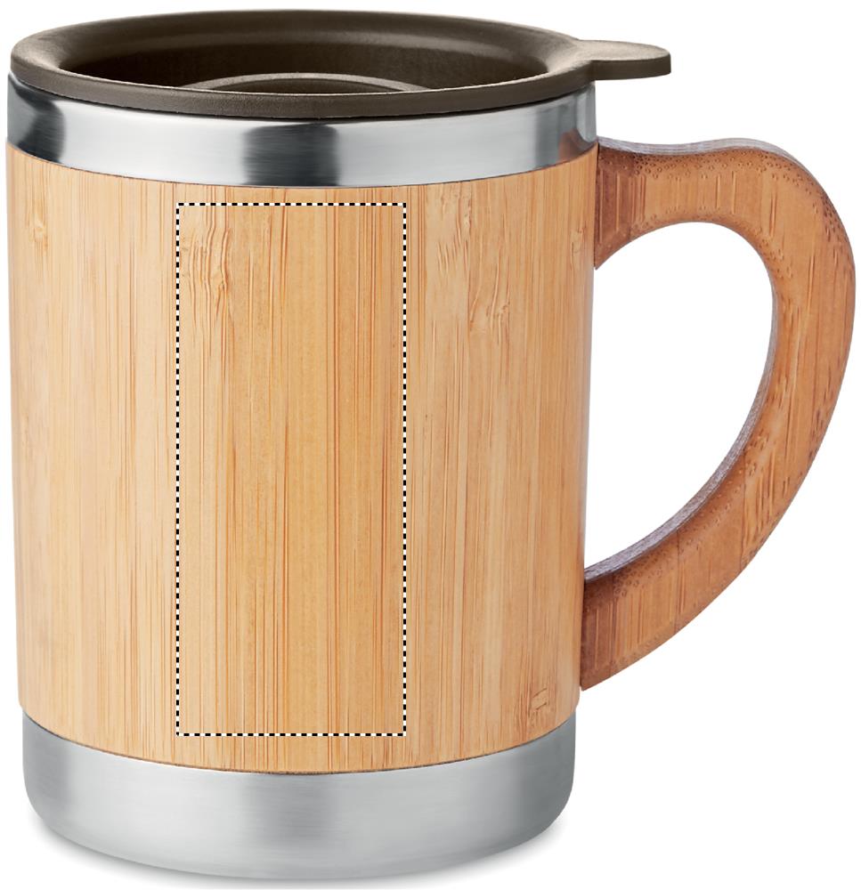 Double wall Stainless Steel mug with bamboo case and moveable drink hole. Capacity 300 ml. Bamboo is a natural product, there may be slight variations in colour and size per item, which can affect the final decoration outcome. Bamboo is a natural product, there may be slight variations in colour and size per item, which can affect the final decoration outcome.