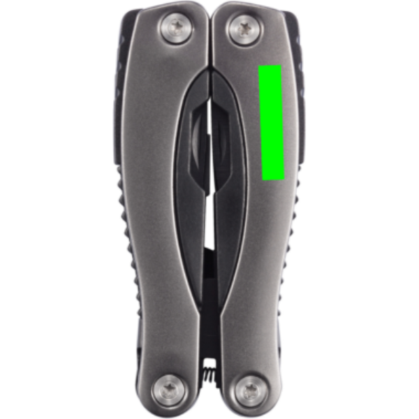 Aluminium multitool, handle with black details, 14 functions, packed in black 600D pouch.