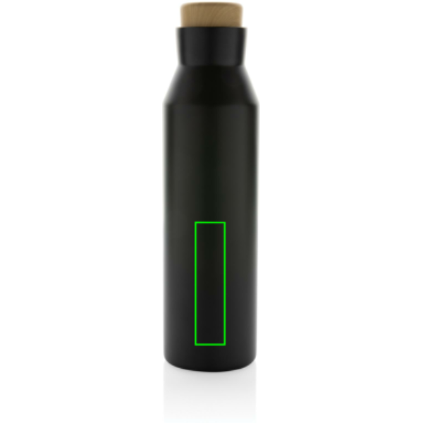 Quench your thirst anywhere you go with the Gaia leakproof vacuum bottle. Crafted from recycled stainless steel with a leakproof PP woodlook lid, this 600ml bottle keeps your beverages 5 hours warm and 15 hours cold. With a smooth finish, this vacuum bottle is a must-have in your drinkware collection. BPA free. Made with RCS (Recycled Claim Standard) certified recycled materials. RCS certification ensures a completely certified supply chain of the recycled materials. Total recycled content: 88% based on total item weight.