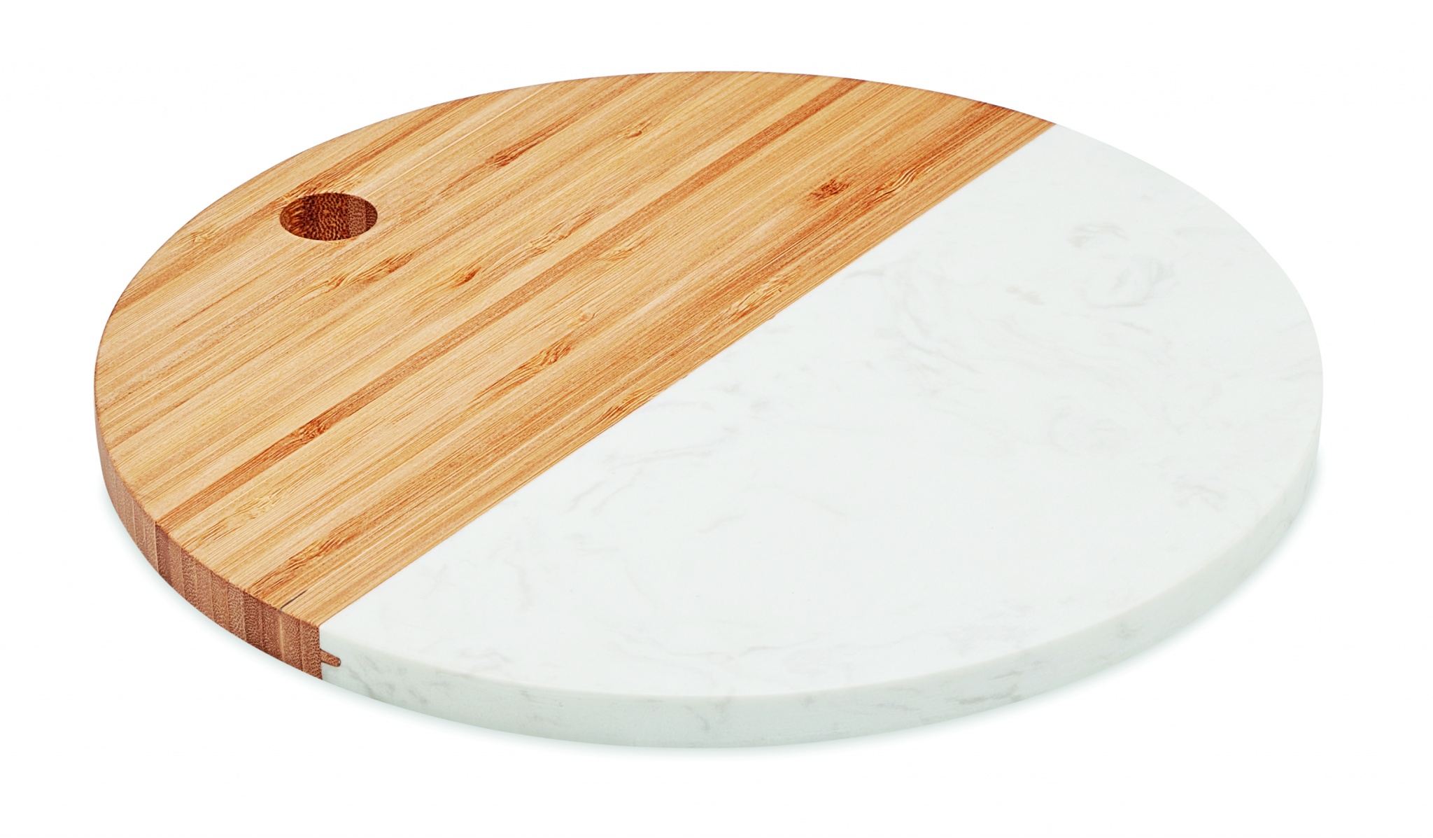 Serving board in marble and bamboo. Circular shape. Bamboo is a natural product, there may be slight variations in colour and size per item, which can affect the final decoration outcome.