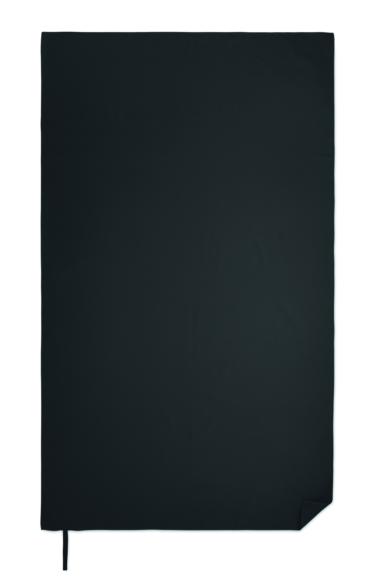 Microfibre towel made of 90% polyester and 10% polyamide with elastic hanger loop. Lightweight and quick drying. Size 70 cm x 120 cm.