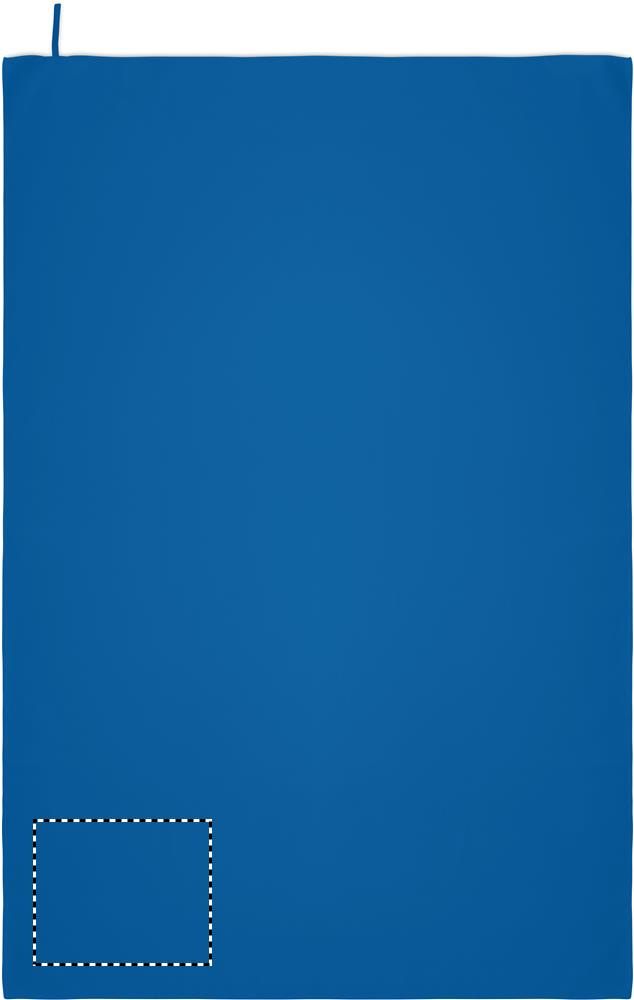 Microfibre towel made of 90% polyester and 10% polyamide with elastic hanger loop. Lightweight and quick drying. Size 100 cm x 150 cm.