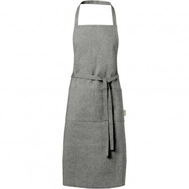 Apron made of 200 g/m² recycled cotton polyester blend. Features 2 adjacent pockets with a combined size of 45 x 20 cm, and a 1 metre tie back closure. Recycled cotton is manufactured from pre-consumer waste generated by textile factories during the cutting process. Due to the nature of recycled cotton, there may be a very slight colour variation. This feature distinctly adds to a more authentic appearance. Length of the neck strap: 55 cm.