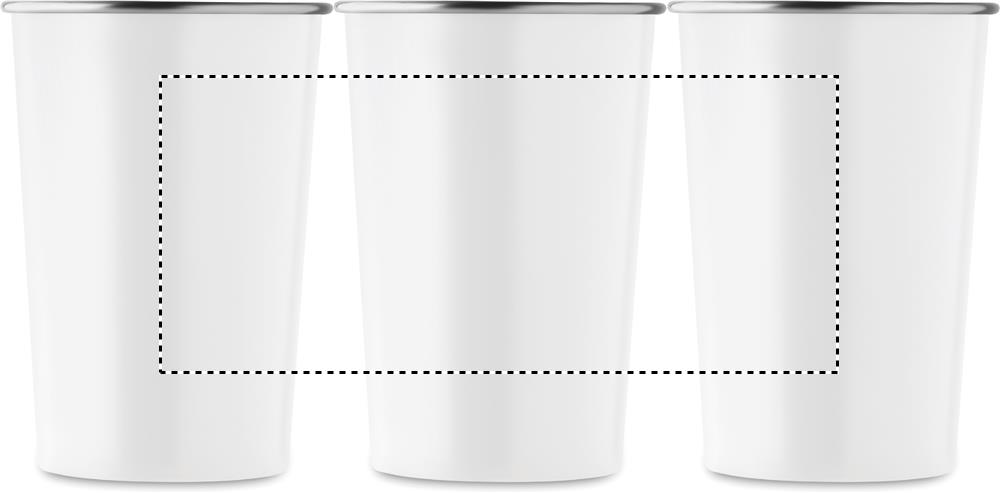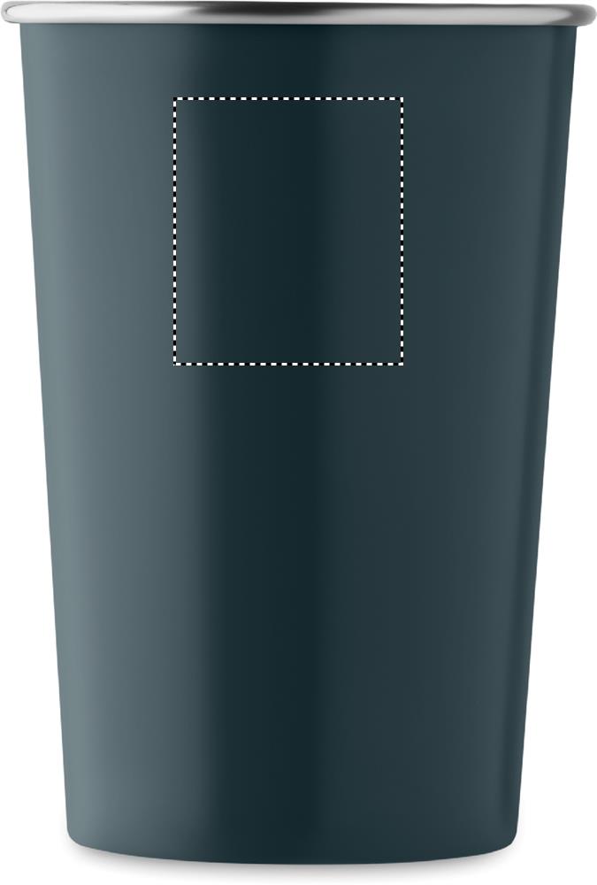 Reusable recycled stainless steel (90% recycled stainless and 10% stainless steel) cup. Capacity: 350 ml. As this is a single walled mug heat transfer can still occur.