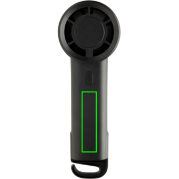 The Twist portable fan, made from RCS certified recycled plastic, is a compact and versatile solution to stay cool anywhere. Its sleek black body, made from 35% RCS recycled ABS, houses a rechargeable 1200 mAh Li-ion battery, providing up to 6 hours of working time with just 3 hours of charging via the included 30 cm black TPE USB-A to USB-C cable. With three adjustable speed levels and an extendable hook that doubles as a stand, the Twist fan is perfect for use at a desk, bedside, or while travelling.The case is made from RCS certified recycled ABS plastic. RCS (Recycled Claim Standard) is a standard to verify the recycled content of a product throughout the whole supply chain. Total recycled content: 35 % based on total item weight. This fan is PVC-free and packaged in an FSC® certified kraft box. Max. power: 2W | Input current: 5V / 1A