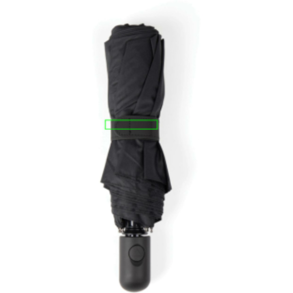 This stylish and modern 21-inch umbrella will keep you dry even on the rainiest of days. The compact size makes it the perfect confidant for life on the go. Crafted from premium 190T pongee RPET fabric, it provides excellent rain protection whilst it boasts a sleek design. Designed with a metal shaft and full fiberglass frame, this umbrella ensures strength and durability for challenging weather. The minimalist ABS plastic handle, with a comfortable rubber finish, adds contemporary flair and a secure grip. Featuring an auto-open/manual-close system for ease of use. The storage pouch in the classic Baltimore PU fabric provides additional protection when not in use. Stormproof. With AWARE™ tracer technology, this umbrella confirms the genuine use of recycled materials, underscoring our commitment to responsible sourcing.