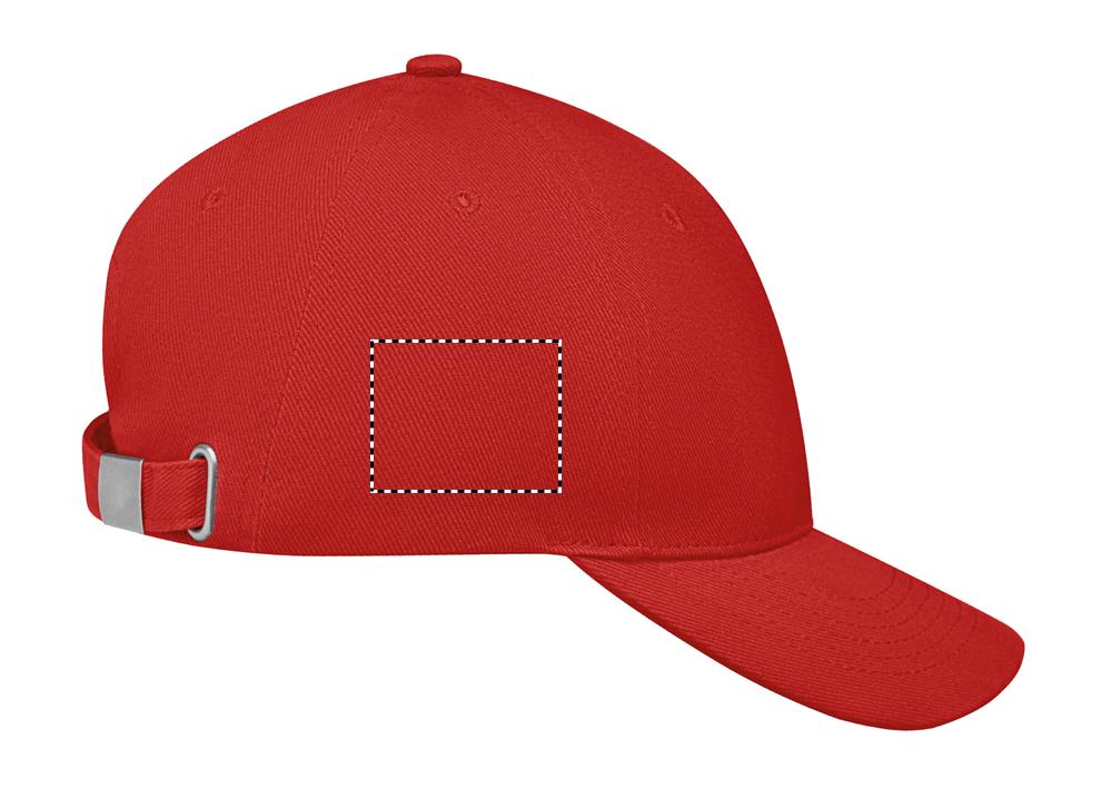 5 paneeliga tugevast harjatud toimsest puuvillasest pesapallimüts 260 g/m2 hõbedase teraspandlaga. 4 sobivas värvitoonis tikitud aasa. Suurus 7 1/4.