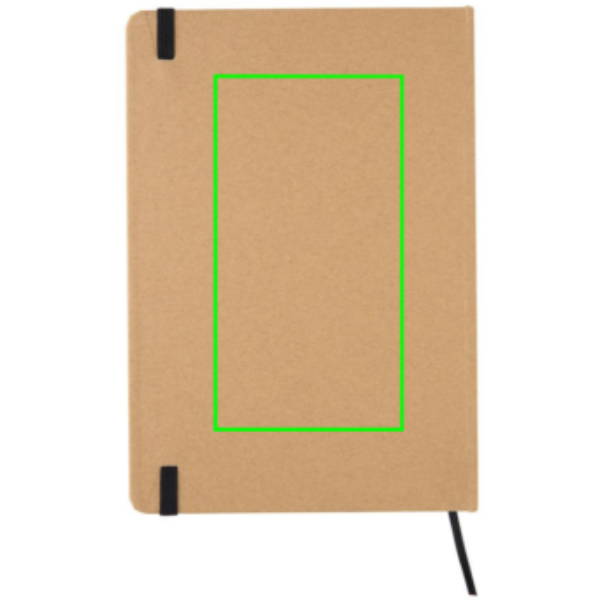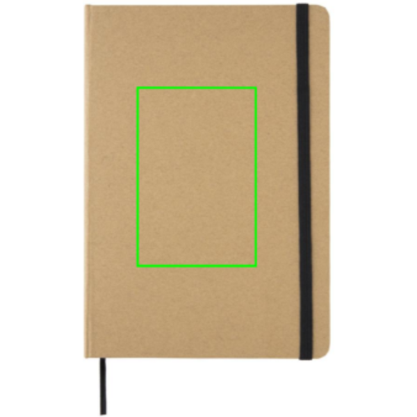 Kraft-kaantega märkmik taaskasutatud paberiga. 72 lehte/144 lehekülge 70 g/m2 paberit. Kreemivärviline paber. Elastne riba ja järjehoidja lint.
