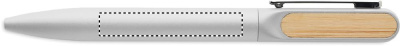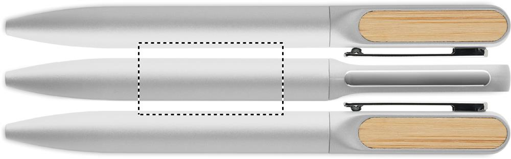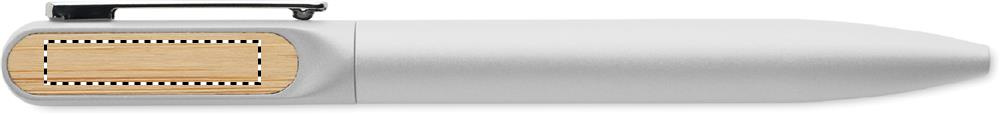 Keeratava funktsiooniga pastapliiats taaskasutatud alumiiniumist korpuse, taaskasutatud ABS-plastist keerme osaga ja bambusdetailidega metallklambriga. Sinise tindiga.