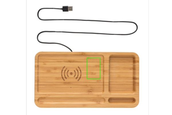 Logotrade firmakingi foto: Bambusest lauaorganisaator 5W juhtmevaba laadija