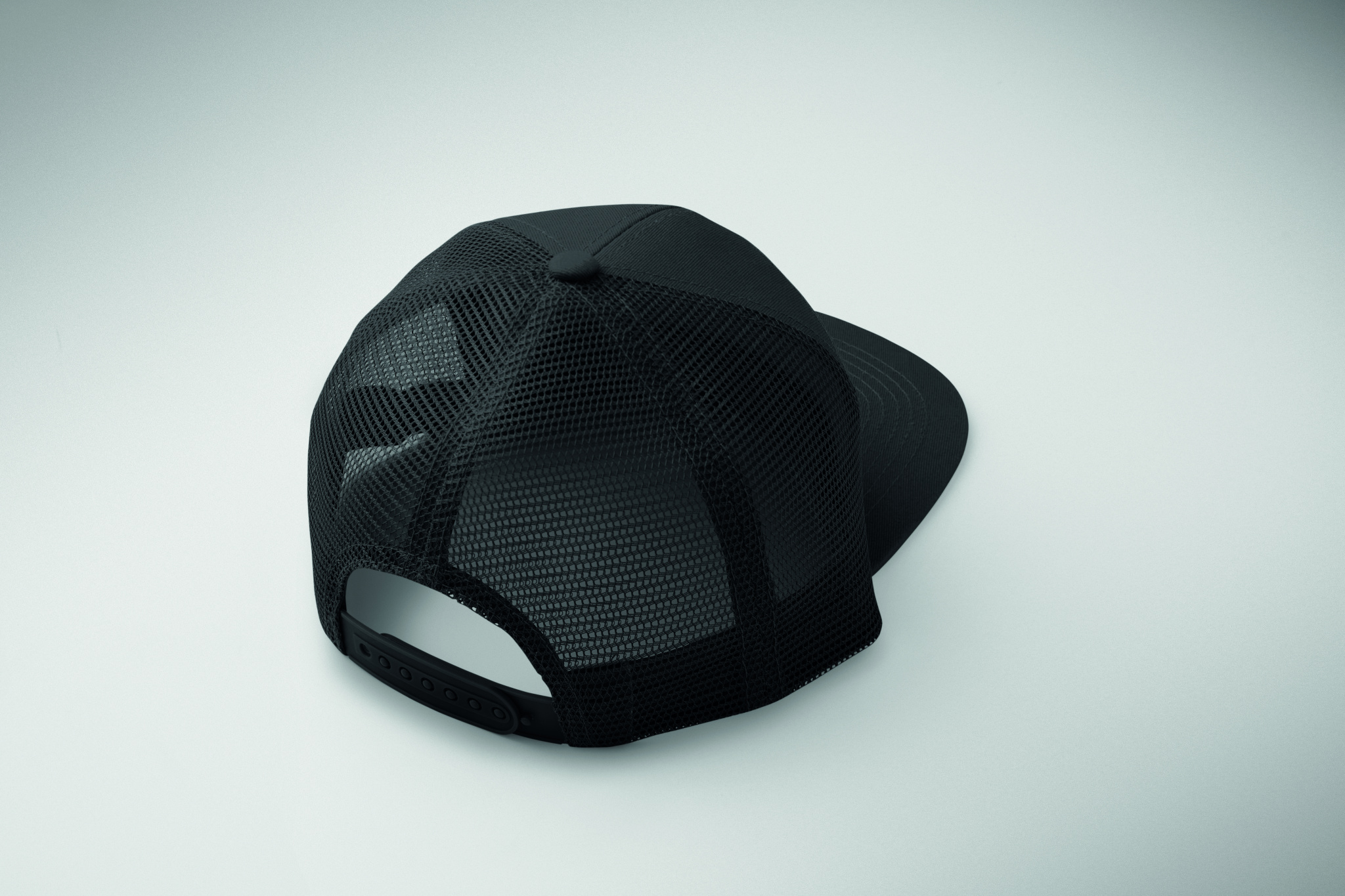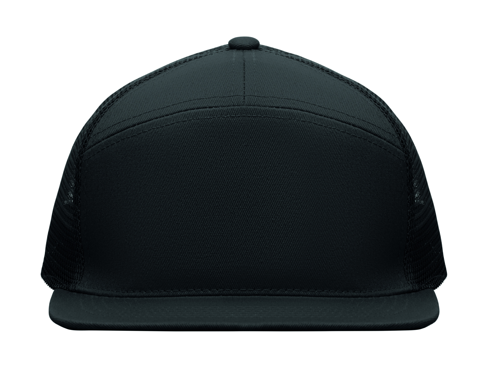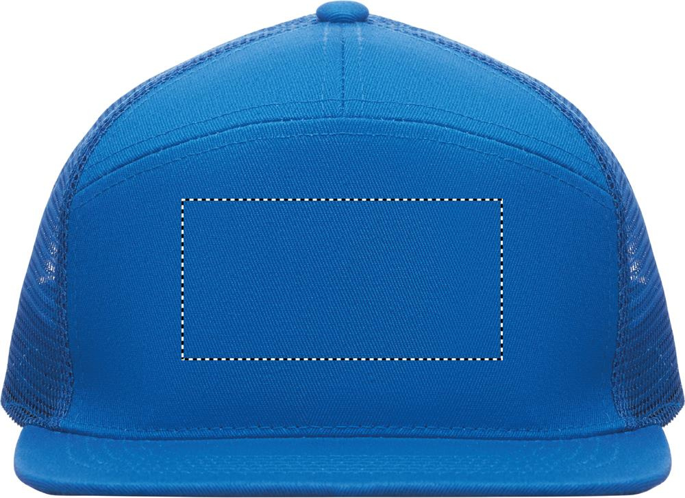 7-paneeliga lameda nokaga nokamüts puuvillasest twill-kangast (235 g/m²), polüestervõrguga tagaküljel, plastkinnisega.