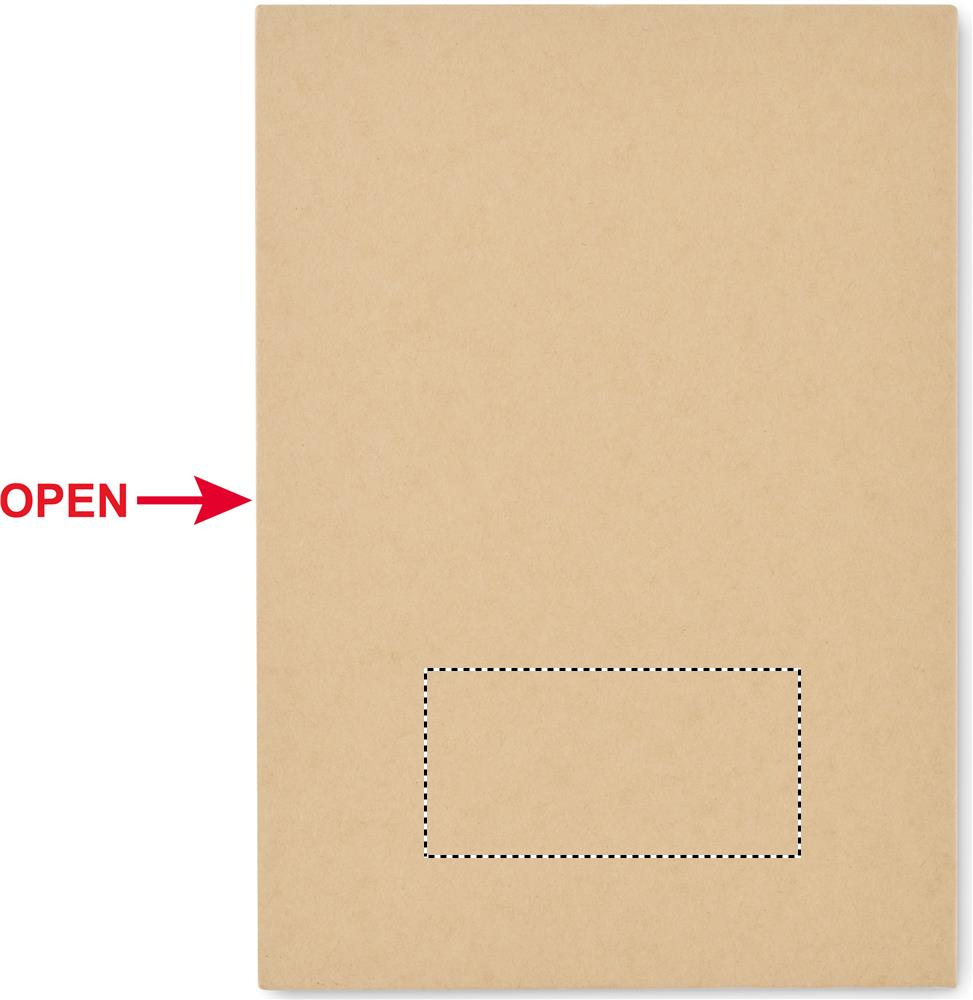 Märkmikukomplekt taaskasutatud pappkaanega. 70 taaskasutatud paberilehte. Kleepuvad märkmepaberid. Pastapliiats paberist silindri ja ABS osadega, ABS teritaja, 2 puidust pliiatsit, 15 cm puidust joonlauda ja PP nurgamõõtja.