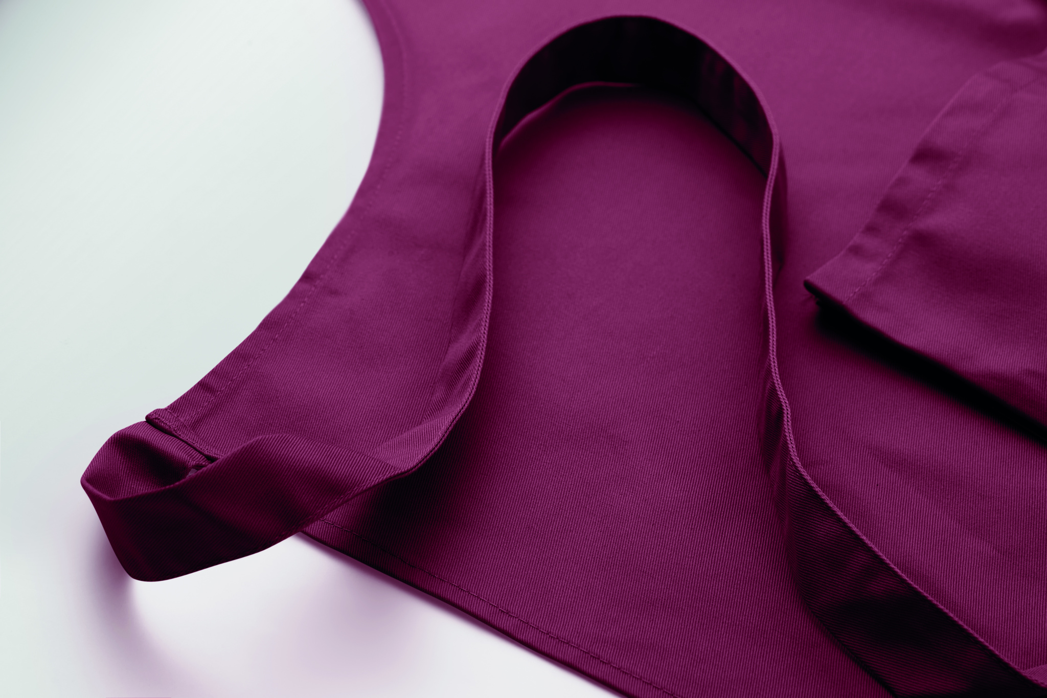 Pikk reguleeritava pikkusega köögipõll 240 g/m² polüpuuvillast (35% puuvill, 65% polüester), millel on kaks esitaskut ja reguleeritav metallpandlaga rihm.