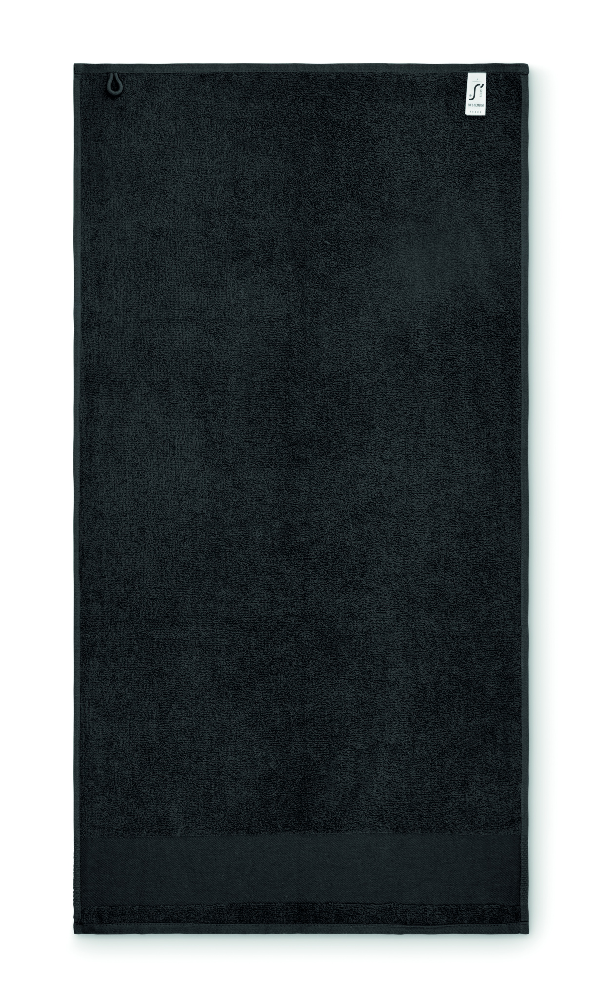 Must 100% puuvillast käterätik, 380 g/m² kangast, puuvillase riputusaasaga. Pehme ja imava disainiga. Mõõt 50 cm x 100 cm.