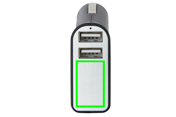 Logotrade reklaamkingi foto: Kahe pordiga autolaadija koos rihmlõikuri ja haamriga