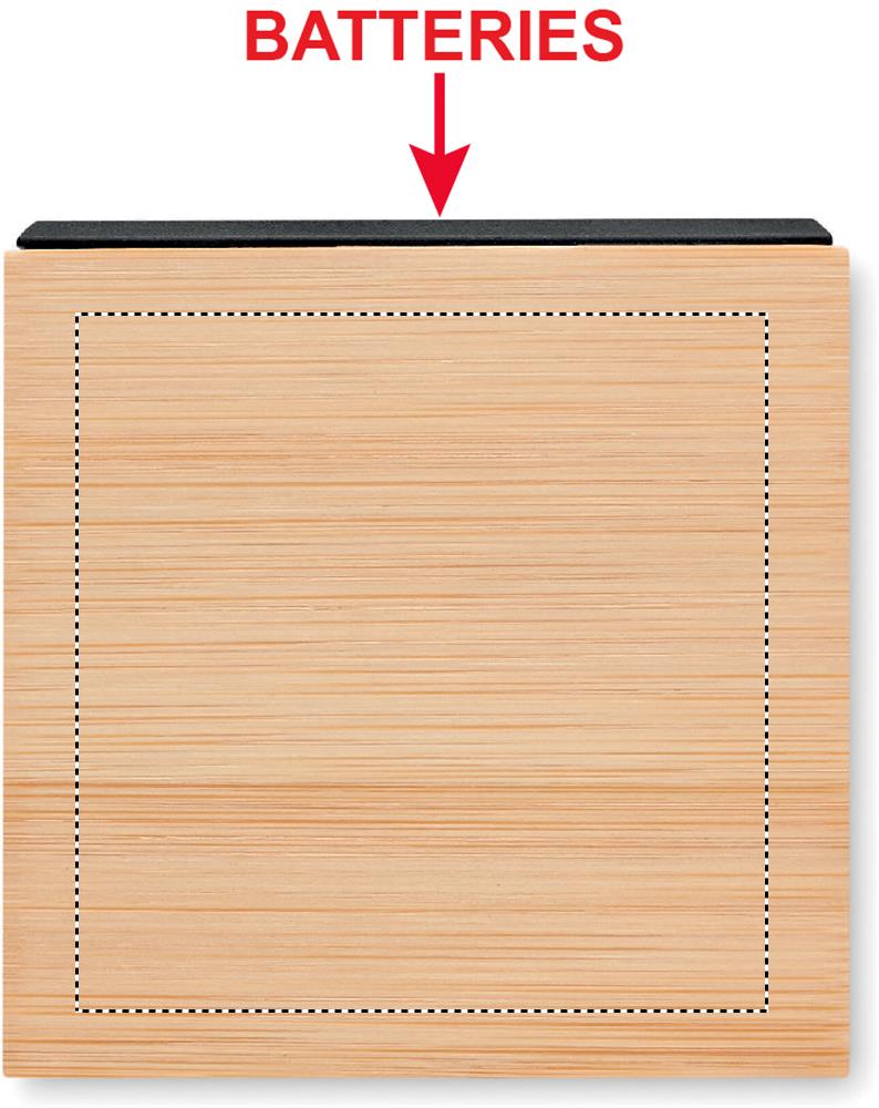 Logo trade reklaamtoote pilt: Kuubikukujuline bambusest LED äratuskell Dortmund