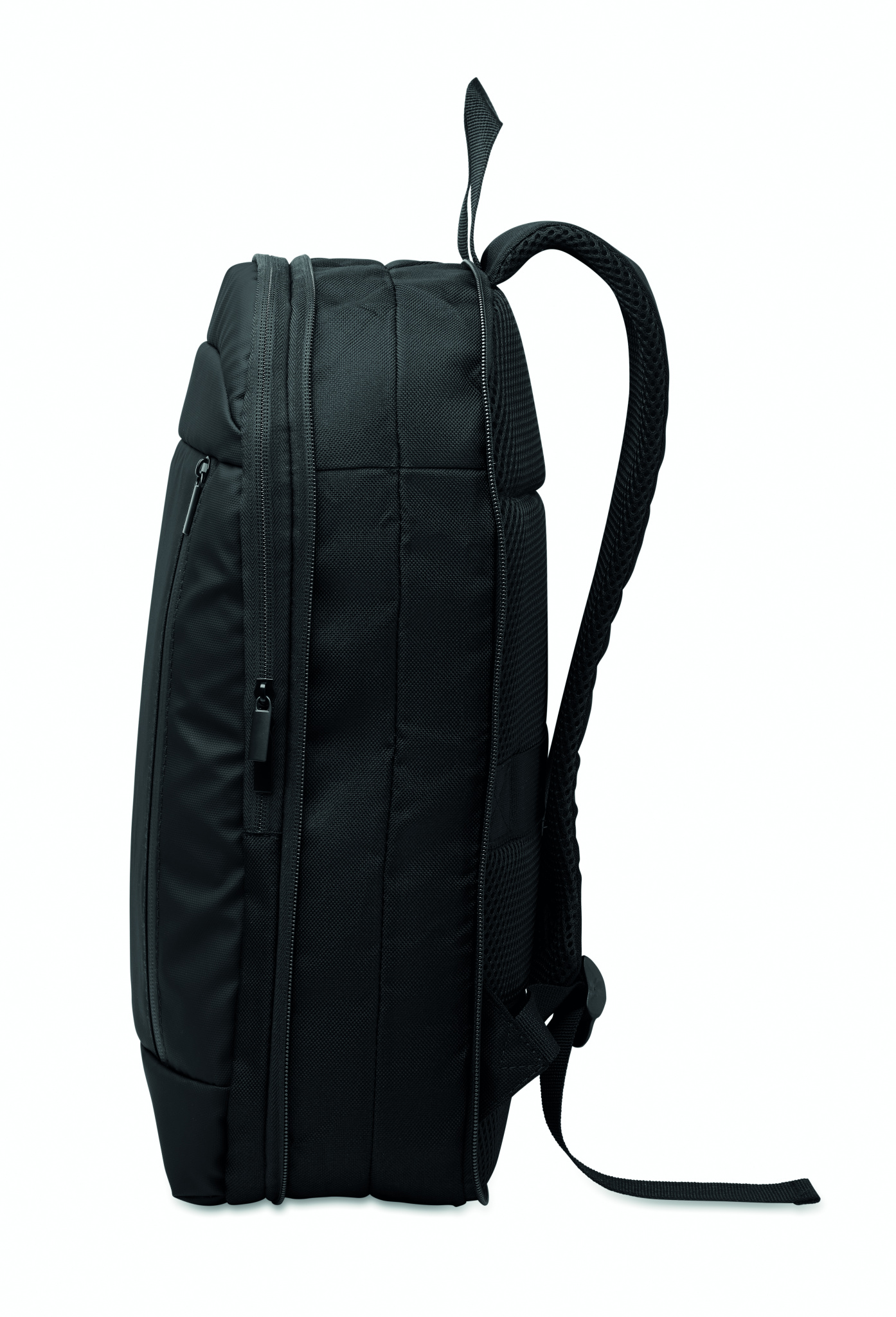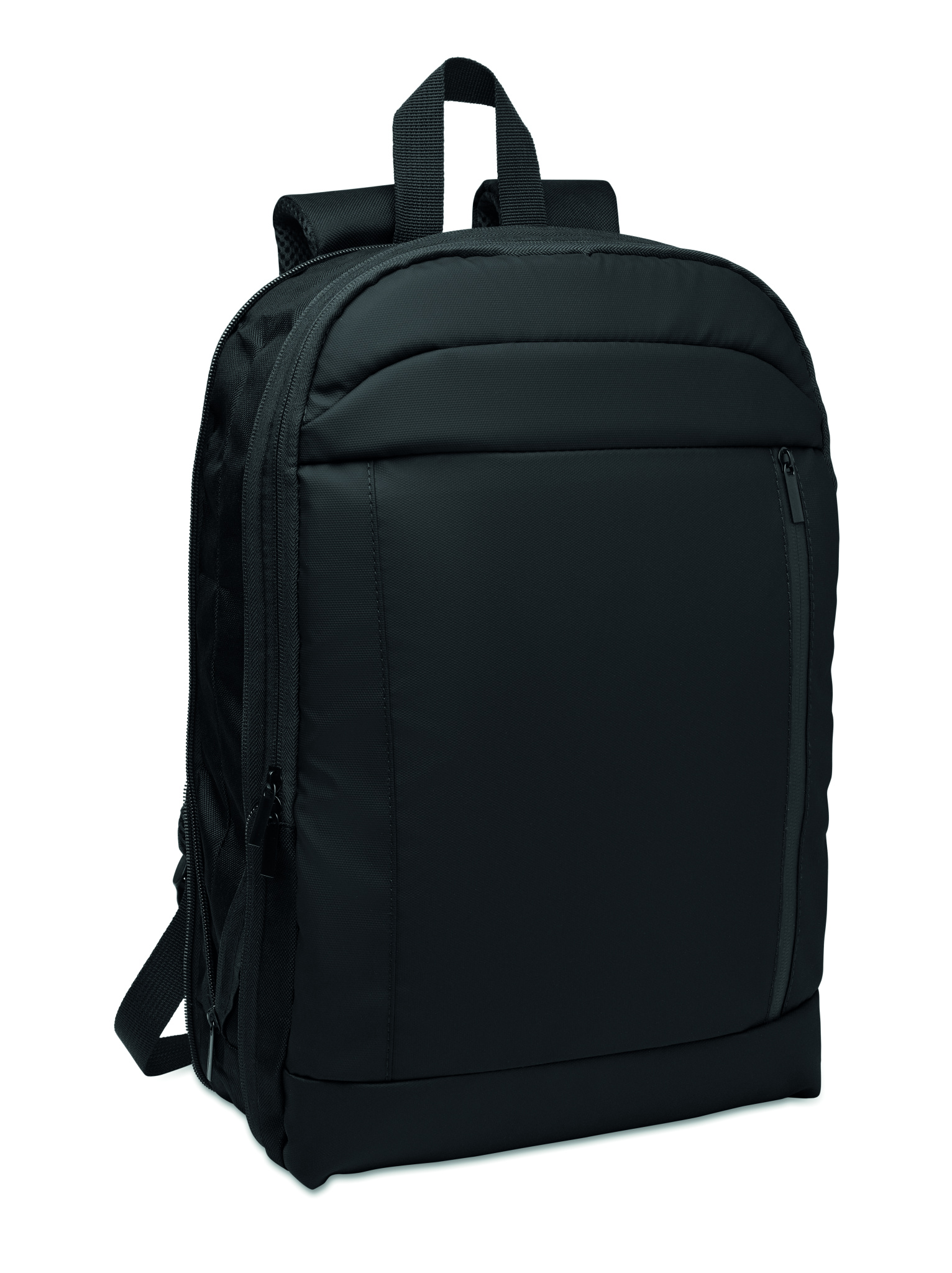 Laiendatav 600D RPET polüestrist arvutiseljakott 16'' PU-kattega esiküljel ja RPET polüestervoodriga. Peidetud lukuga tasku ja polsterdatud sülearvuti sahtel, esitasahtliga, võrgust seljatoega ja pagasirihmaga.