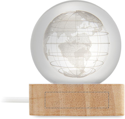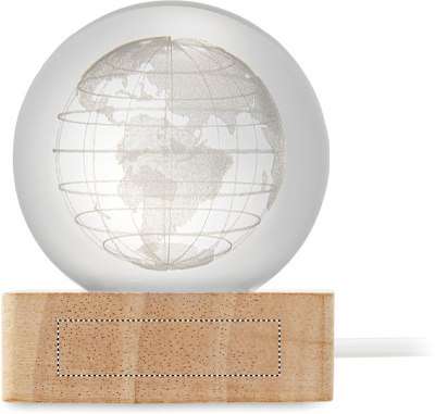 Klaasist kerakujuline pall LED-valgusega (100 luumenit) kummipuust alusel. Komplektis USB-laadimiskaabel (90 cm).