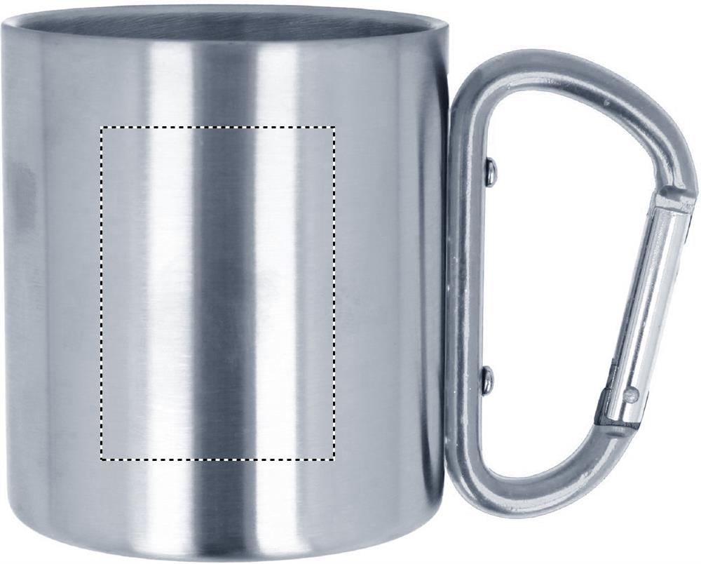 Kaheseinaline roostevabast terasest kruus, karabiiniga sangaga. Mahutavus: 220 ml.