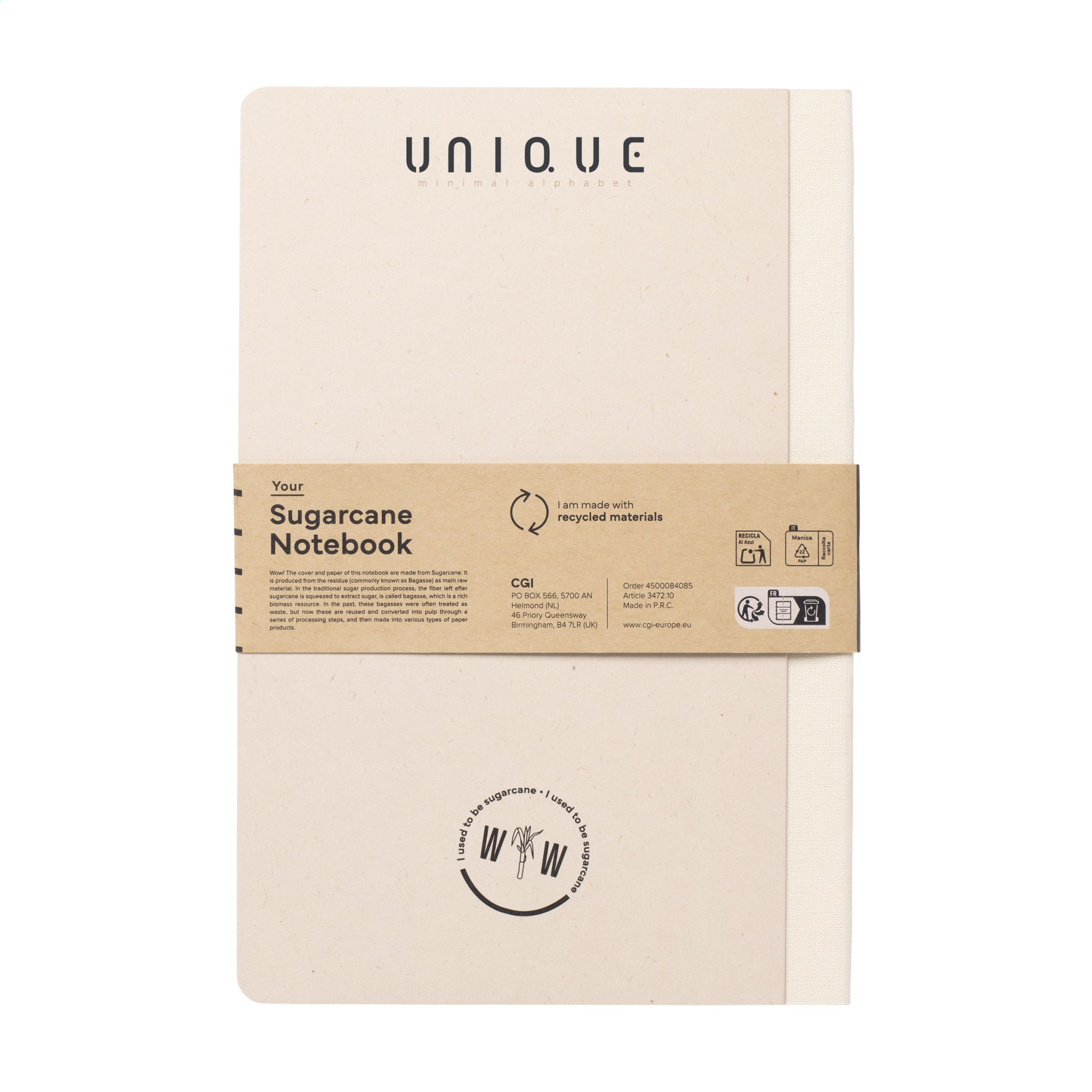 Vau! Eksklusiivne A5 märkmik, mis on valmistatud suhkrurootehase taaskasutatud jäätmetest. Kõva kaanega ja 80 lehte/160 lehte joonitud paberit (100 g/m²). Kaas ja paber on FSC® sertifikaadiga. Paber, milles on näha väikesed kiud, on ilusa helepruuni värvusega. See rõhutab looduslike materjalide kasutamist. Pärast koristamist jäävad suhkrurootaime juured maasse. Varred ja lehed töödeldakse jäägiks, mida kasutatakse bioplasti valmistamiseks. Suhkrurootaim eraldab kasvu ajal õhust CO2 ja võib elada kuni 10 aastat.