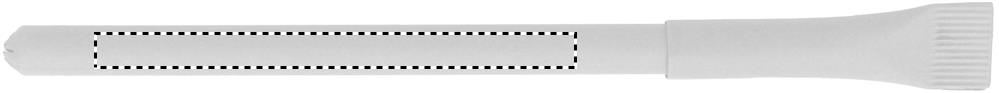 Korgiga pastapliiats on täielikult valmistatud sinise tindiga taaskasutatud paberist.