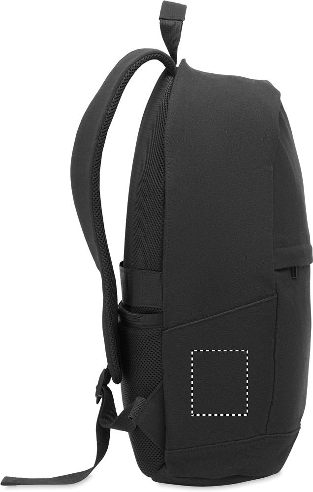 15 tuuman kannettava reppu kierrätetystä esikulutetusta puuvillasta ja kierrätetystä polyesteristä mukautettavalla painatuksella, Musta