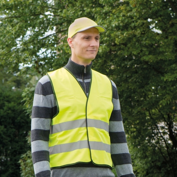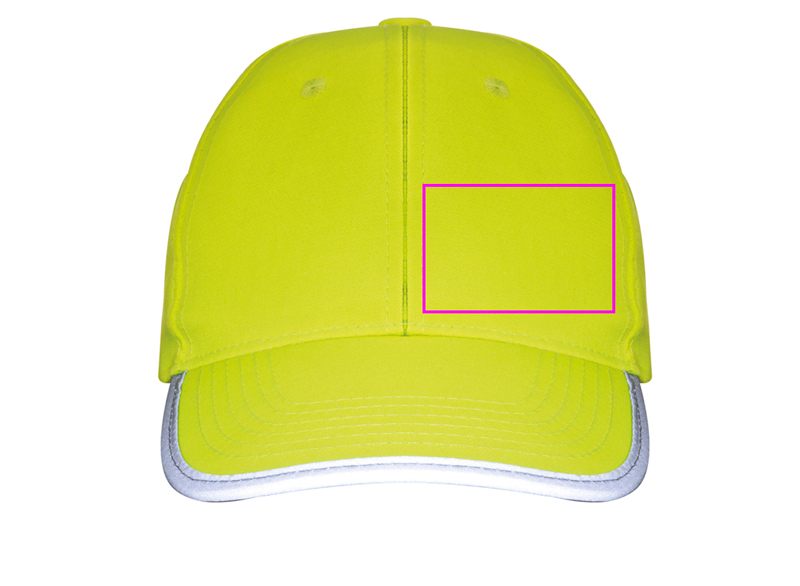Polyesterista valmistettu pesäpallolippis, jossa heijastinputket visiirissä. Painamme logosi otsan keskelle.