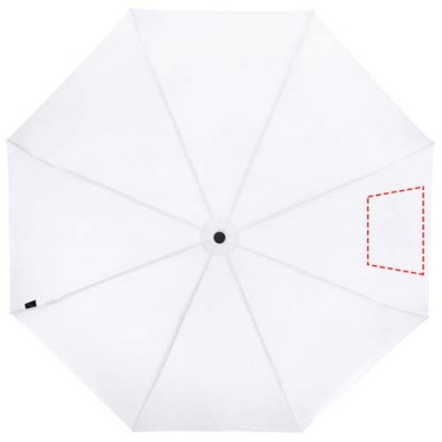 Kokoontaitettava sateenvarjo, jonka kupu on pongee-polyesteri PET-kierrätysmuovista. Tukeva metallivarsi ja laadukas runko lasikuitutuilla joustavat tuulessa. Mukana tuleva pussi kulkee mukavasti käsilaukussa tai repussa. Puinen kahva ja PET-kierrätysmuovista valmistettu pongee-polyesterikupu tekevät tästä ympäristöystävällisen vaihtoehdon. Laaja valikoima nykyaikaisia värejä ja suuri logomerkintä jokaisessa paneelissa.