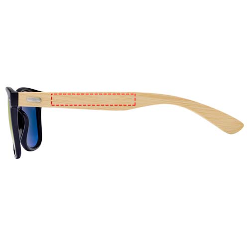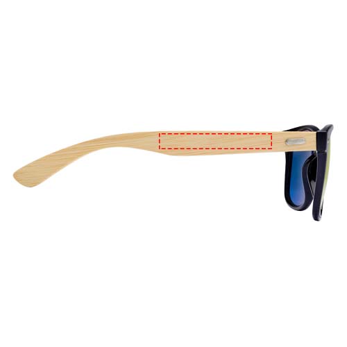 Tyylikkäät aurinkolasit värillisillä linsseillä ja bambusangoilla. UV 400 -linssit suojaavat haitallisilta ultraviolettisäteiltä. EU:n turvallisuusstandardin EN12312-1 mukainen.