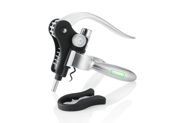 Tyylikäs alumiininen viinipullonavaaja, joka toimii helppokäyttöisellä vipumekanismilla. Korkkiruuvi on teflonpinnoitettu, lahjapakkauksessa mukana sinettileikkuri.