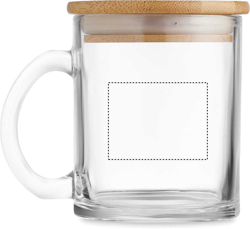 Kierrätyslasimuki bambukannella. Tilavuus: 300 ml.