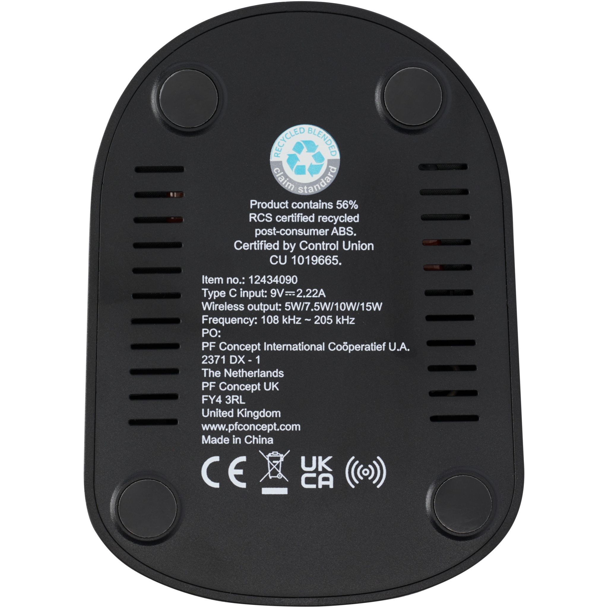 Logo trade mainoslahja kuva: Loop 15 W:n langaton kaksisuuntainen latausteline RCS-kierrätetystä muovista