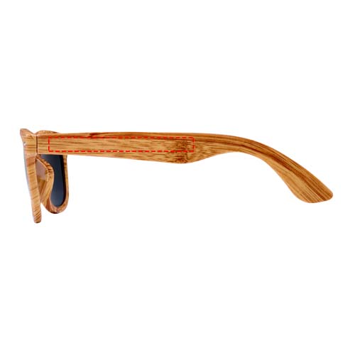 Retromalliset aurinkolasit puuta muistuttavalla pinnalla. Nämä UV 400 -linsseillä varustetut aurinkolasit on luokiteltu kategoria 3:een, joten ne ovat täydellinen valinta suojaamaan kirkkaalta auringonvalolta. EU:n turvallisuusstandardin EN12312-1 mukainen. PC-muovista tuotetta voi hieman taivuttaa mukavuuden vuoksi.