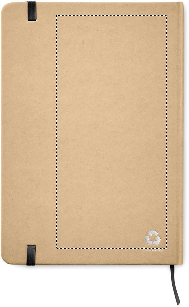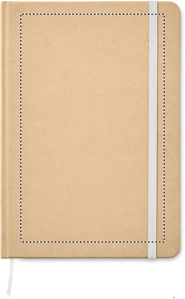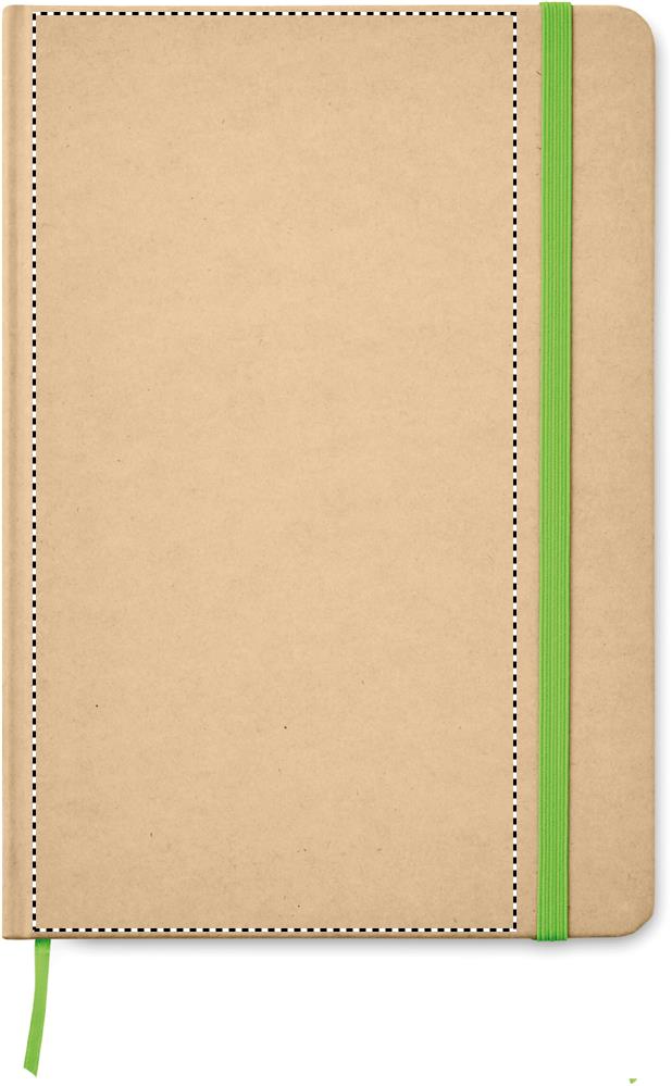 A5 muistikirja kovalla kierrätetyllä kartonkisella kannella, 160 viivoitettua sivua (80 arkkia) sisältää elastisen sulkuhihnan ja kirjanmerkin.