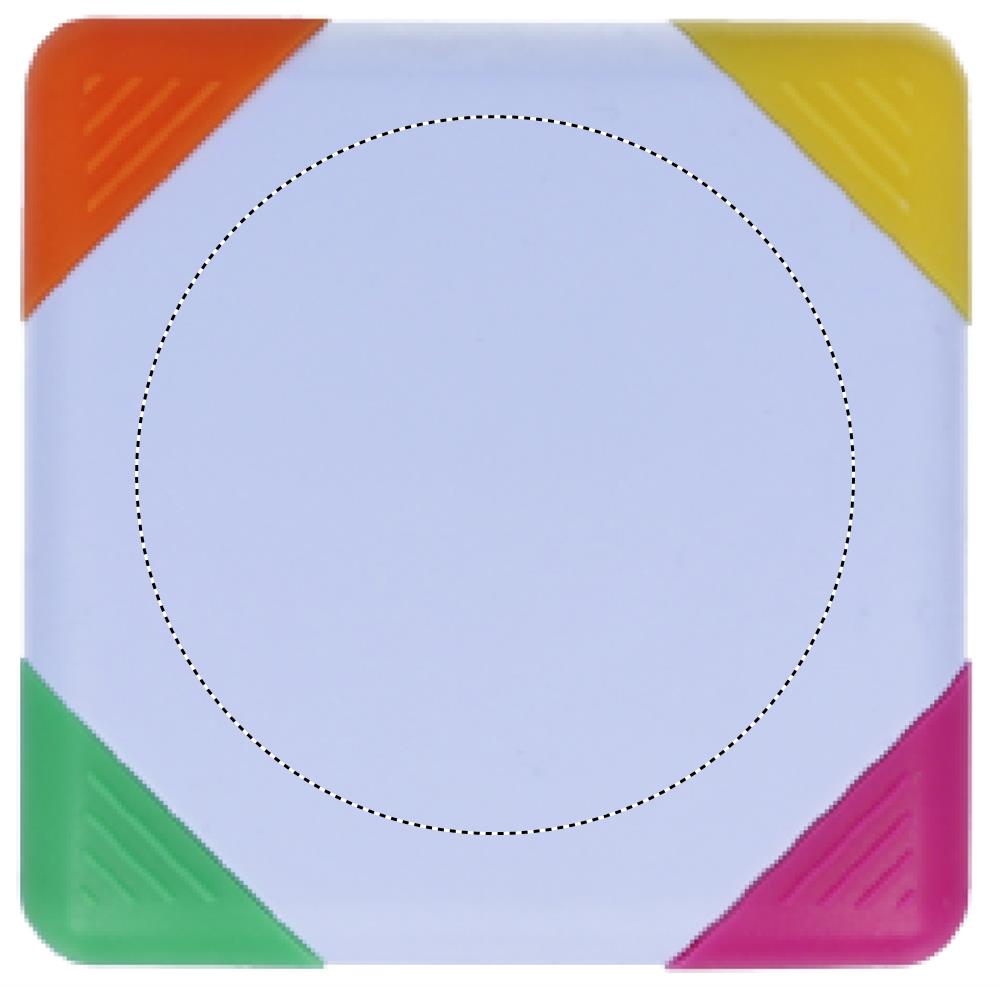 Neliönmallinen korostuskynä ABS-kotelossa. Sisältää 4 eri väriä keltainen, fuksia, oranssi ja vihreä.